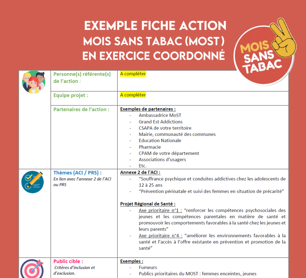 Fiche récapitulative sur les étapes de l’organisation du Mois Sans Tabac